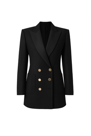 The Toscana Nova 6-Button Blazer combines timeless sophistication with a modern twist. Designed with a lower button stance, this blazer stops a few inches below the seat offering a relaxed yet tailored silhouette, perfect for versatile styling. Made from premium wool and accented with luxurious gold buttons, it exudes understated elegance. Whether paired with trousers or layered over a dress, it’s a chic choice for both day and evening wear.