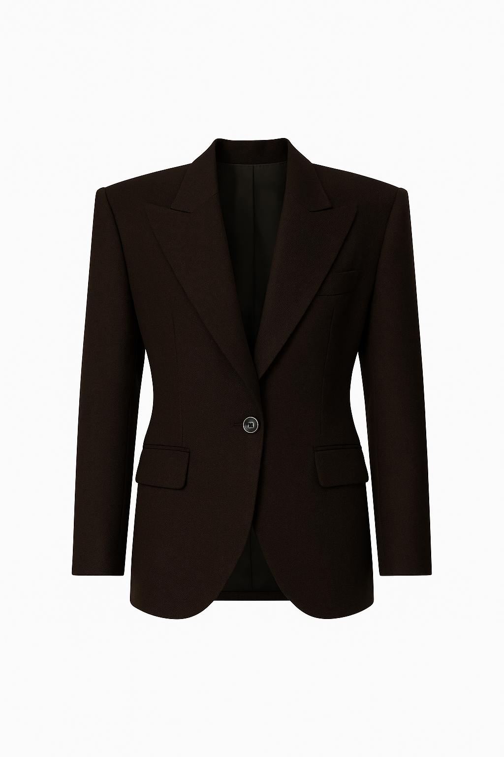 The Toscana Vera Blazer embodies the essence of bold femininity and refined tailoring. Featuring our signature deep V-cut, structured wide shoulders with subtle padding, and a cinched waist, it creates a stunning hourglass silhouette that’s both powerful and elegant. Crafted to command attention, this one-button design transitions effortlessly from a business meeting to an evening dinner. Pair it with wide-leg trousers or denim for a chic, confident look that exudes modern sophistication.